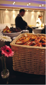Zu den Besonderheiten der Barlounge zählen die rundum verglaste ehemalige Generatorengrube mit der beleuchtbaren Fontäne sowie das südlich ausgerichtetes Glasdach,
